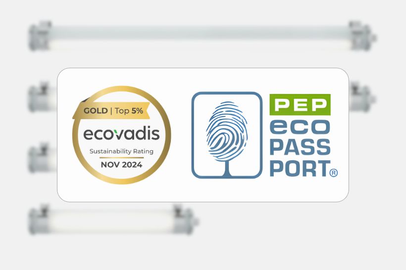 La dimension environnementale de Sammode et de ses produits est reconnue par des labels et certifications indépendants – notamment EcoVadis® pour la démarche RSE de l’entreprise, ou encore PEP Ecopassport®* pour l’évaluation de l’ACV de certaines gammes de luminaires selon un format normalisé et vérifié par un tiers.