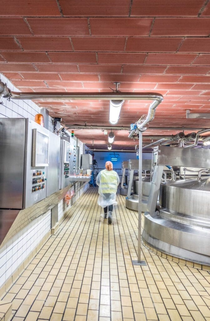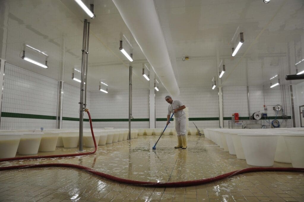 Mithilfe des Labs wird die Milch fest und verwandelt sich in zwei Bestandteile: Molke und Käsebruch. Käse und Joghurt werden aus dem Käsebruch hergestellt, der vor dem Formen gesalzen und in kleine Würfel geschnitten wird. Dieser Prozess findet immer unter streng kontrollierten hygienischen Bedingungen und in einer sehr regelmäßig gereinigten Umgebung statt.