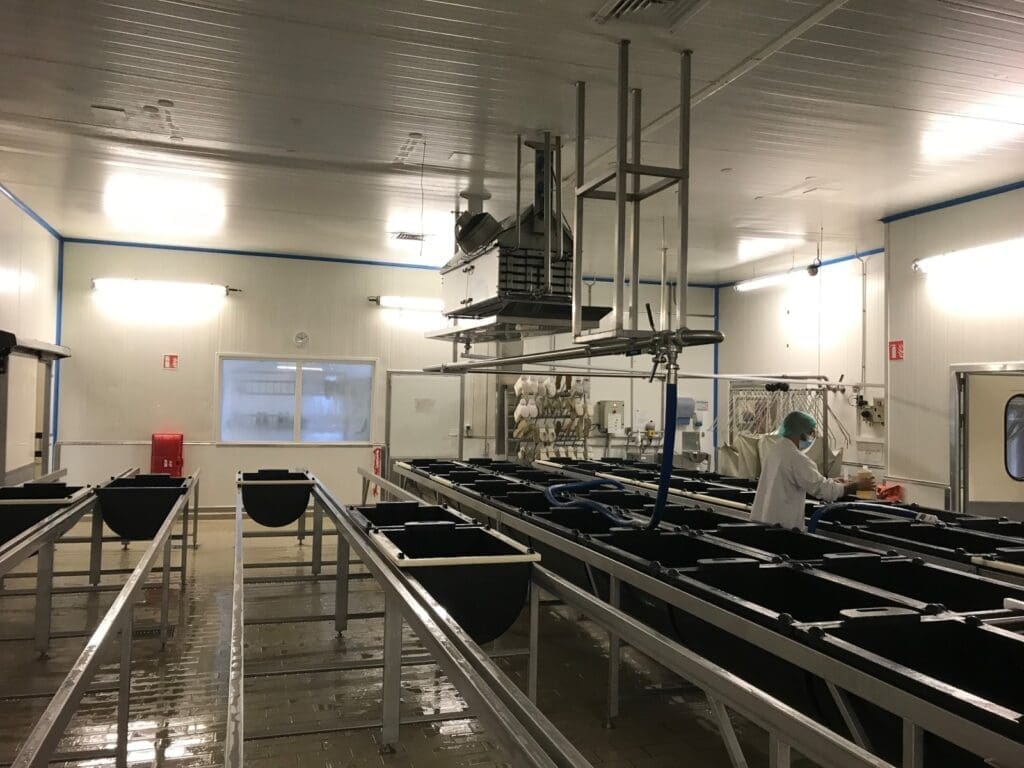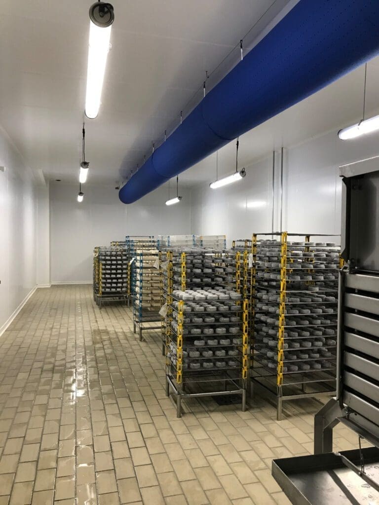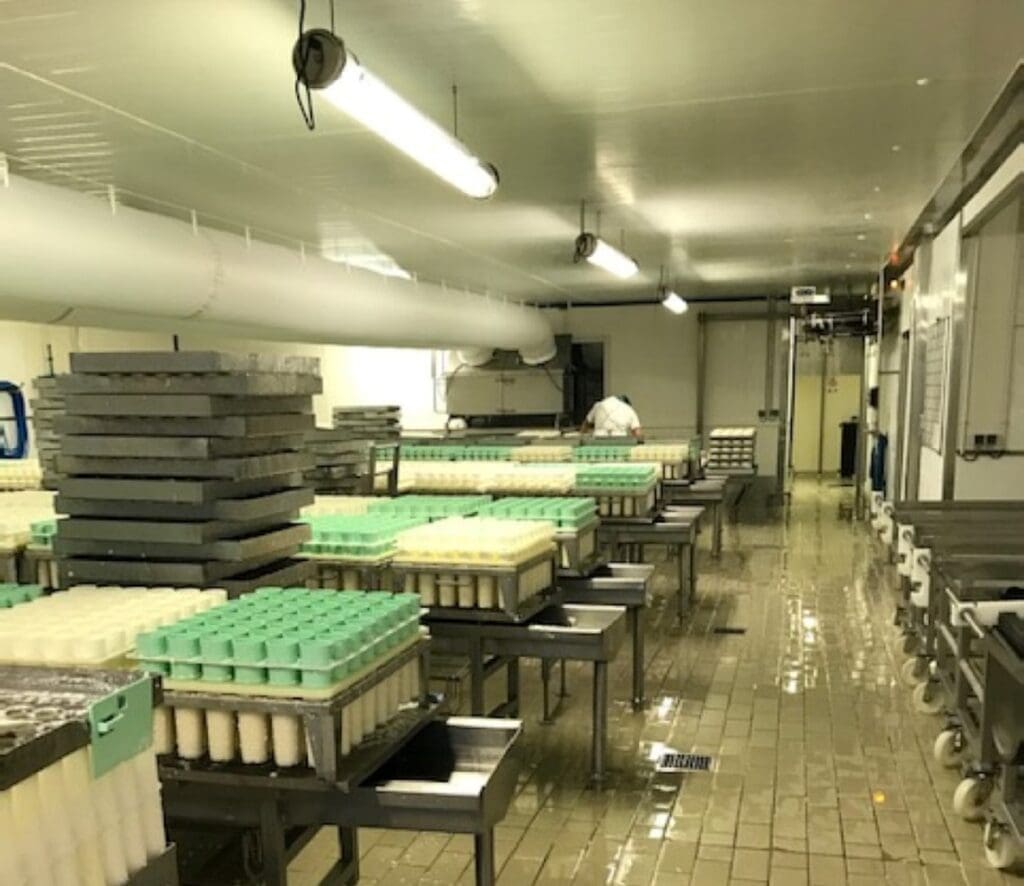 Trocknungstürme sind die Bereiche, in denen der Käse vor der Reifung getrocknet wird. Für jedes Kilo Käse werden 10 Kilo Milch benötigt. Die meisten Verluste entstehen während der Fermentation (Molke), aber auch die Trocknungsphase führt zu einem hohen Maß an Feuchtigkeit, da der Käse Wasser verliert. Trocknungstürme haben außerdem häufig eine hohe Deckenhöhe und sind Temperaturen von bis zu 75° C ausgesetzt.