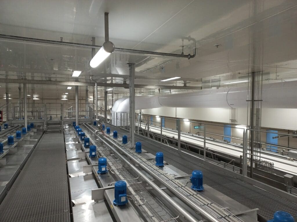 Die Beleuchtung in diesen Bereichen muss in erster Linie qualitativ hochwertig sein, damit sie in einem Umfeld mit starkem Personalverkehr nicht zu einer Ermüdung der Augen führt, muss darüber hinaus aber auch langfristig eine Dichtheit gegen Feuchtigkeit und chemische Korrosion durch Reinigungsmittel gewährleisten. Die Leuchten müssen zudem robust sein, um den Vibrationen von Maschinen und Förderbändern, aber auch häufigen Hochdruckreinigungen standzuhalten. Wenn die Wartung mit langlebigen und einfach zu installierenden Leuchten (Plug & Play, abziehbare Steckverbindungen) reduziert werden kann, muss die Produktion nicht gestoppt werden.