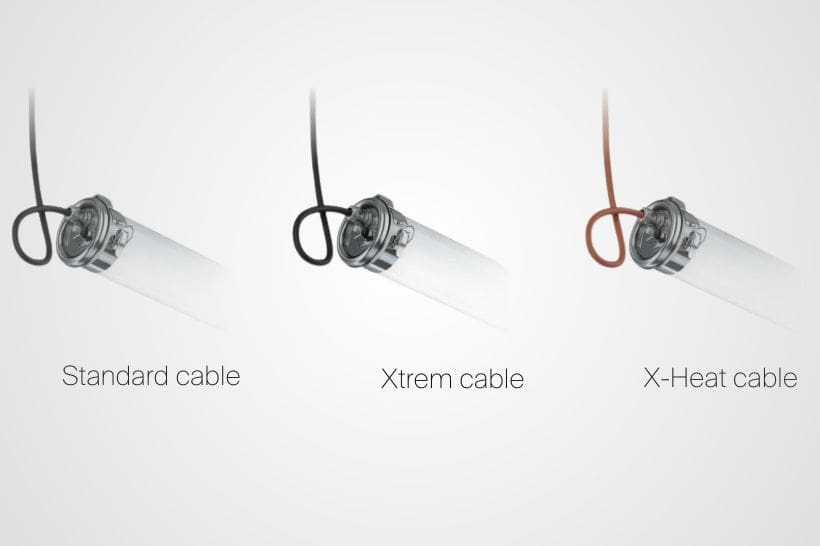 Sammode bietet die Vorverkabelung von Standardkabeln (-25°C bis +40°C Umgebungstemperatur), wärmeverstärkten Xtrem-Kabeln (-40°C bis +50°C Umgebungstemperatur) und X-Heat-Kabeln für sehr hohe Temperaturen (-60°C bis +180°C Umgebungstemperatur). Das X-Heat-Kabel ist flammhemmend und erfüllt die strengen Sicherheitsanforderungen in besonders heißen Umgebungen. Sammode kann Ihnen helfen, die für Ihr Projekt am besten geeigneten Vorverdrahtungslösungen zu finden; jede Leuchte kann vorverdrahtet bestellt werden.