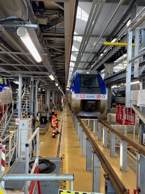 Als erstes Wartungszentrum, das seit 1981 den TGVs gewidmet ist, hat das Technikzentrum TSEE (850 Mitarbeiter) in den letzten Monaten ein großes Facelifting erfahren, um sich zu modernisieren und an die Besonderheiten des TGV M anzupassen. Die gesamten Wartungsanlagen mussten angepasst werden, „um sie mit dem zukünftigen Zug kompatibel zu machen„, wie die SNCF in einer Pressemitteilung erklärte. Unter den Anpassungen wurden neue LED-Leuchten für die Beleuchtung der Laufstege der Wartungswerkstatt (Pascal-Leuchten) sowie für die Revisionsgruben (Niepce-Leuchten, die für die Gruben optimiert wurden) installiert.