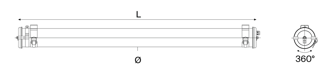 Röhrenlampe aus Borosilikatglas Þ 100 und 133, CRI 95, Ideal fĂŒr Lackierkabinen ATEX zone 2, 21 and 22