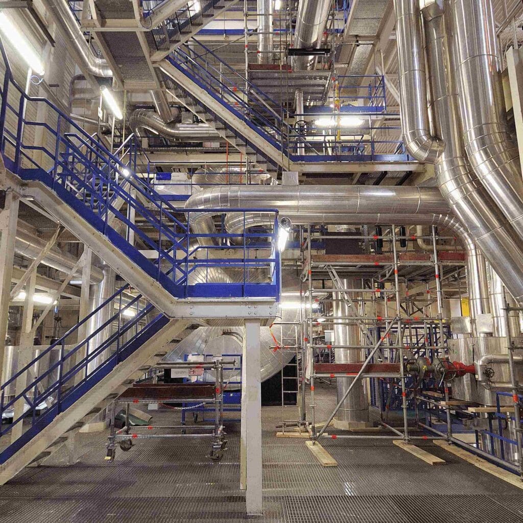 In addition, the cooling towers, used to cool the plant’s secondary circuits by evacuating steam, are very damp, subject to limestone-laden run-off and high temperatures. The machine rooms are also subject to flying parts.