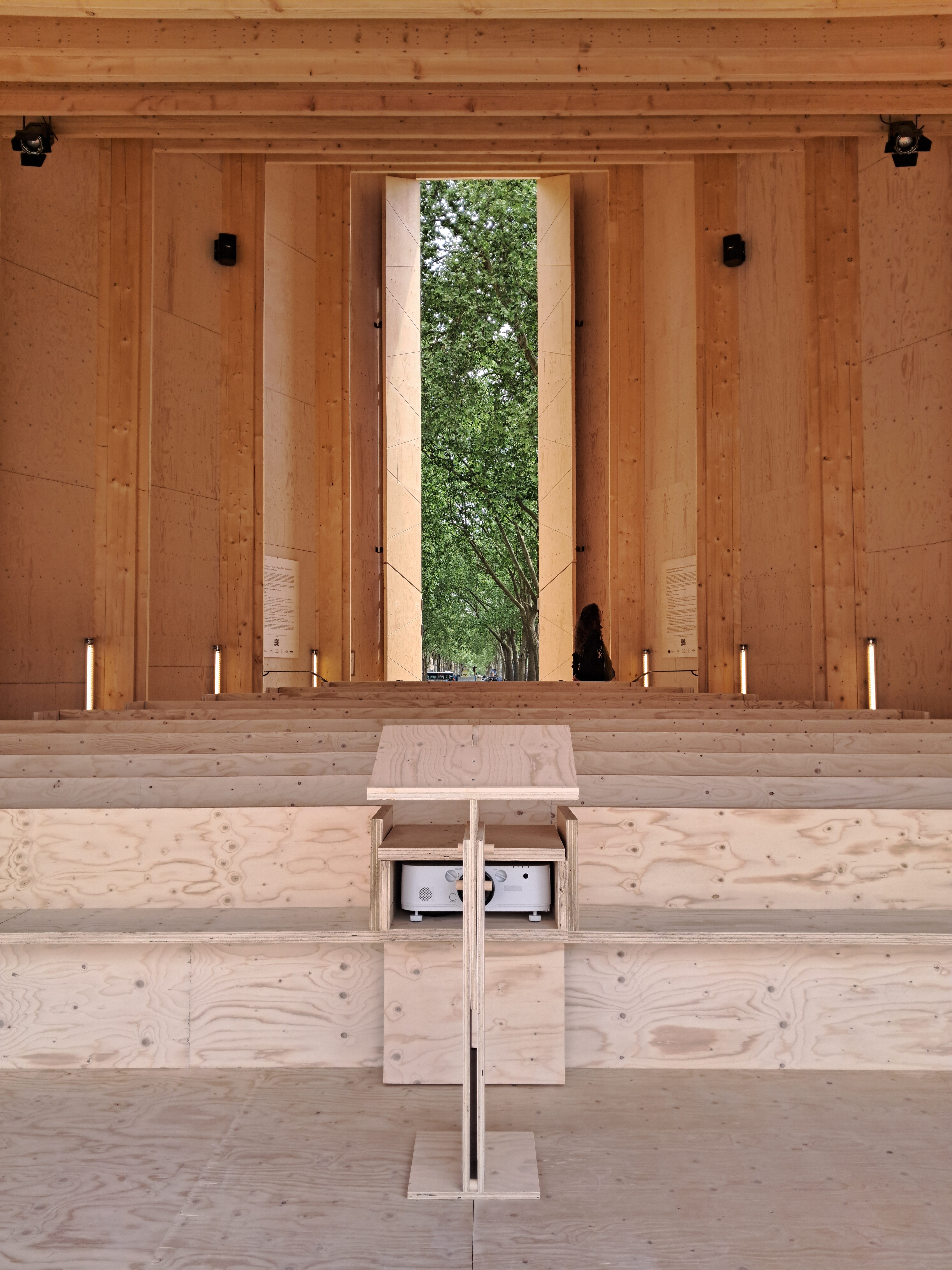 A structure that can be dismantled and reused, the “Petite Agora” can be relocated for future events in line with Sammode’s focus on reuse, in the service of a more responsible architecture, attentive to the sustainability of materials.
