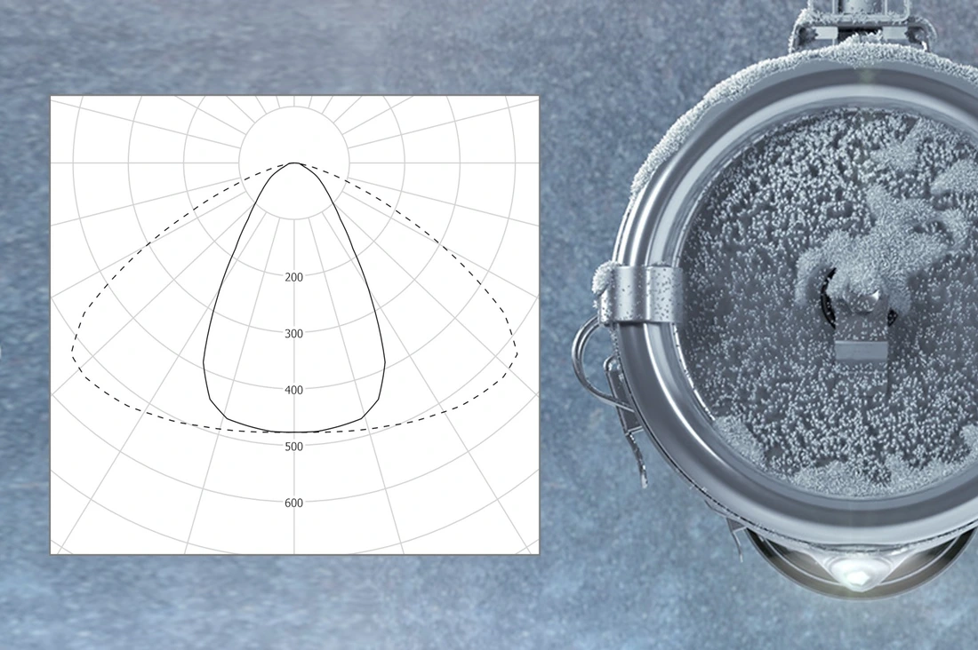 Cold rooms with high shelving require reliable lighting and optimal light distribution. The Barents luminaire is specifically equipped with a highly efficient high-intensity LED source and offers the optical performance of a floodlight with the legendary sealing of a Sammode tubular luminaire.