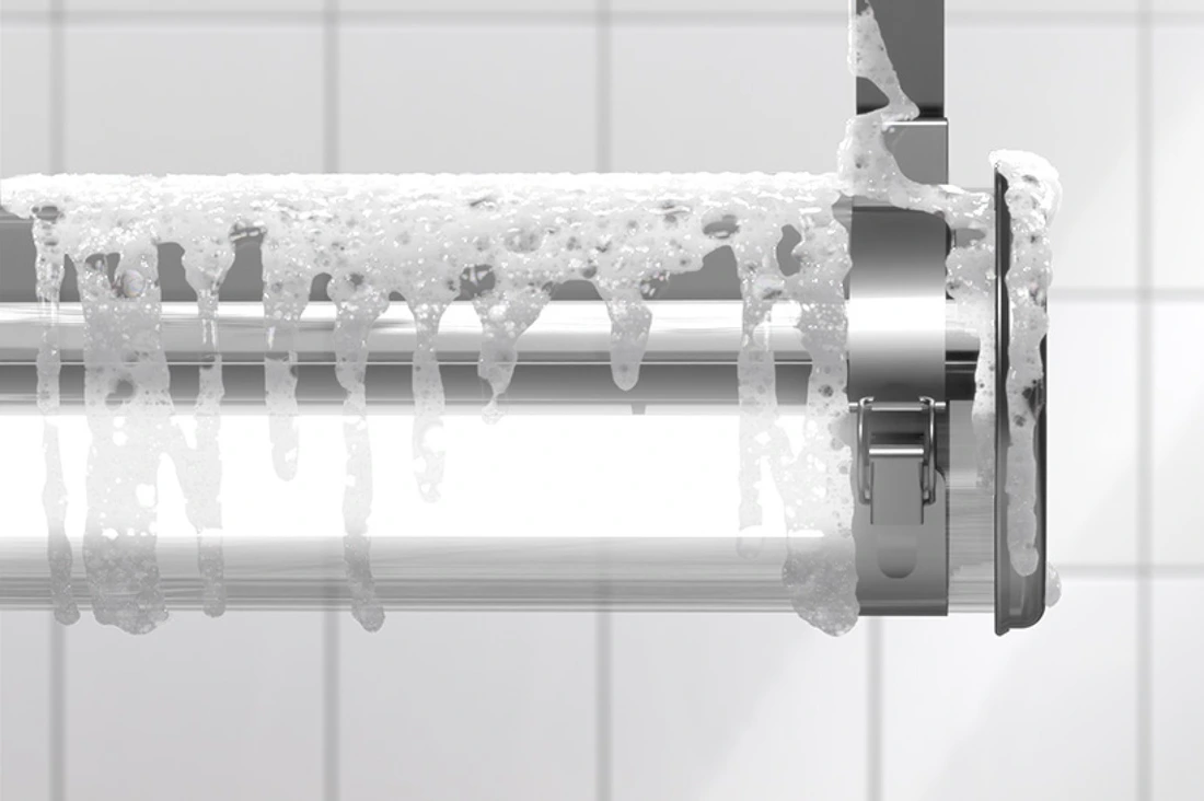 Ultimate IP68 and IP69K sealing! Thanks to its 3-seal system and uniform tightening with a central screw, the housing remains firmly sealed to prevent humidity or fine dust from entering and to withstand high-pressure washing. Guaranteed health and safety, everywhere and well into the future!
