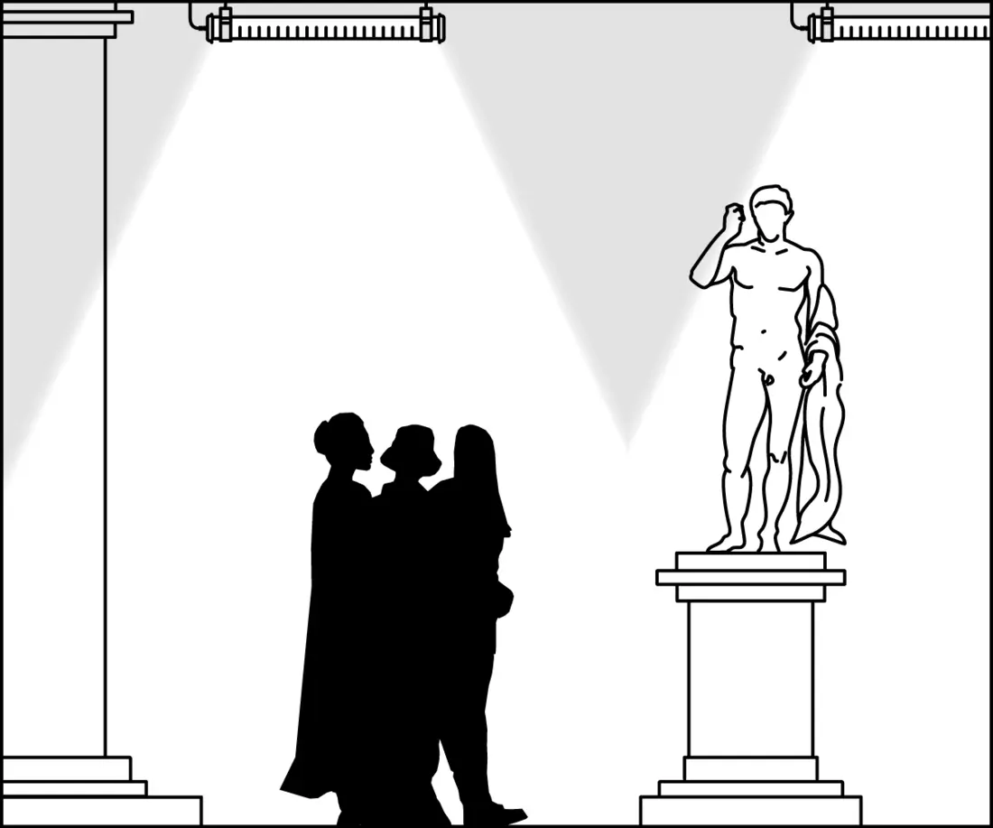 The lengthwise aluminium slats totally conceal the LED source. The pleasant light diffused on the sides subtly flatters spaces, illuminating the floor, walls and ceiling. In busy areas, the Pissarro luminaire provides just the right level of lighting, ensuring comfort and safety for users.