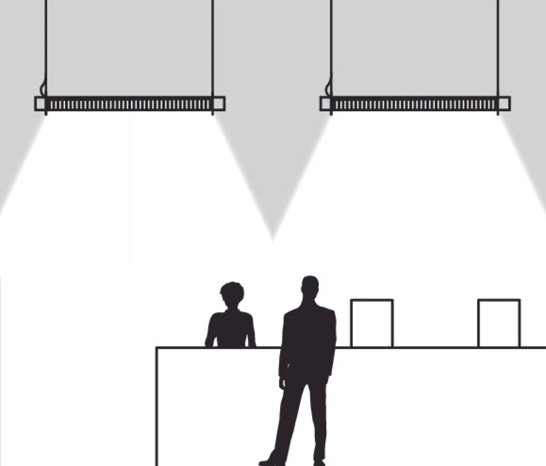 The P1 suspended light fitting can illuminate lobby areas in blocks of flats, hotel bars, shopping mall corridors, indoor areas of luxury outlets, shared coworking office spaces, library reading corners, etc.