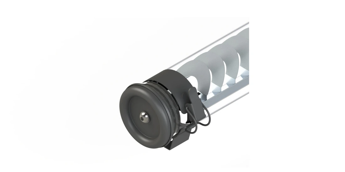 The Scorel ceiling light is both functional and pleasing on the eye, standing out for its transparency and reflections. This luminaire can be trimmed with Coal-coloured end-caps and fixing straps with a Silver, copper, brass or Petrol finish gear unit cover for a more designer look.