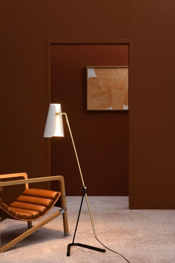 In an inviting work café, you should create a symbiosis of functionality and cosiness. Warm, calming colours contribute to a relaxed atmosphere that invites you to linger. The eye falls on an elegant armchair in Heritage design, which is flooded with the soft lighting of a G21 floor lamp – a masterpiece by Pierre Guariche.