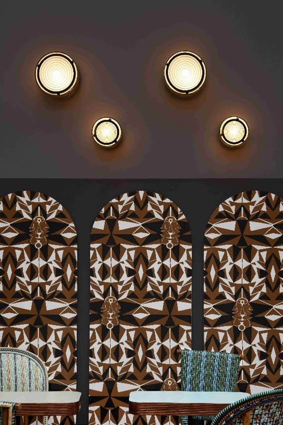 Contrasts were deliberately emphasised in this room concept as part of New Work. Different styles become a new whole, emphasised by the sophisticated lighting of the G13 luminaires by Pierre Guariche. Elegantly mounted in black on the wall above the tables, these luminaires create an inviting environment that skilfully sets lighting accents.