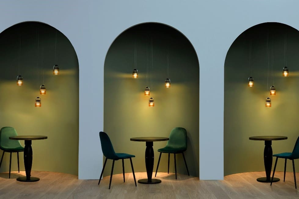 The elegant MOD AIR pendant luminaires by Stefan Diez hover above the tables, illuminating not only the table but also the laptop with targeted light. These luminaires are not just light sources, but genuine design elements that characterise the ambience of the café.