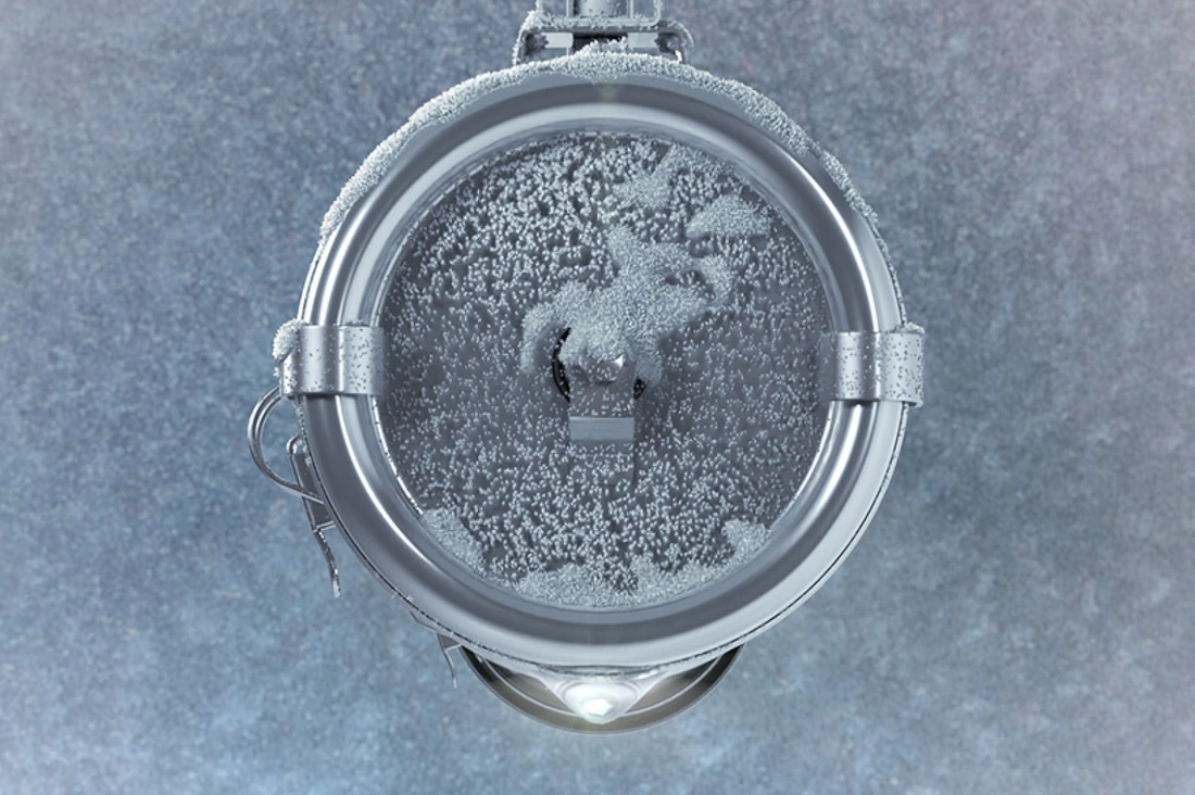 Parce qu'étanchéité et variations de température font rarement bon ménage, Sammode a conçu le Bering, dédié à l'éclairage des tunnels de surgélation et des chambres froides jusqu'à -40°C. Le Bering reste parfaitement hermétique même en cas de forte amplitude thermique ou de nettoyage haute pression.
