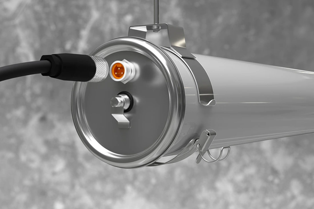 Sa prise débrochable rapide, protégée contre le gel et la pénétration d'humidité grâce à son embase à contacts résinés, permet l'installation du luminaire sans interruption du process. Et puisqu'il est 100% réparable et évolutif, dépose et repose rapide garantie, dans 10 ou 15 ans, sans risque de perte de pièces.