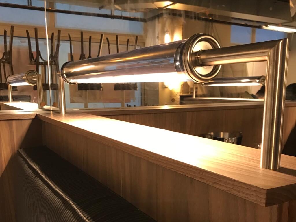 Le choix des luminaires Sammode s’est imposé naturellement. Pour la qualité de leur lumière d’abord — douce, précise, sans éblouissement — mais aussi pour leur esthétique, en accord avec l’esprit du lieu. Leurs lignes sobres, leur enveloppe tubulaire, leur fabrication robuste s’intègrent sans effort dans cette architecture intérieure, qu’ils accompagnent sans jamais voler la vedette.